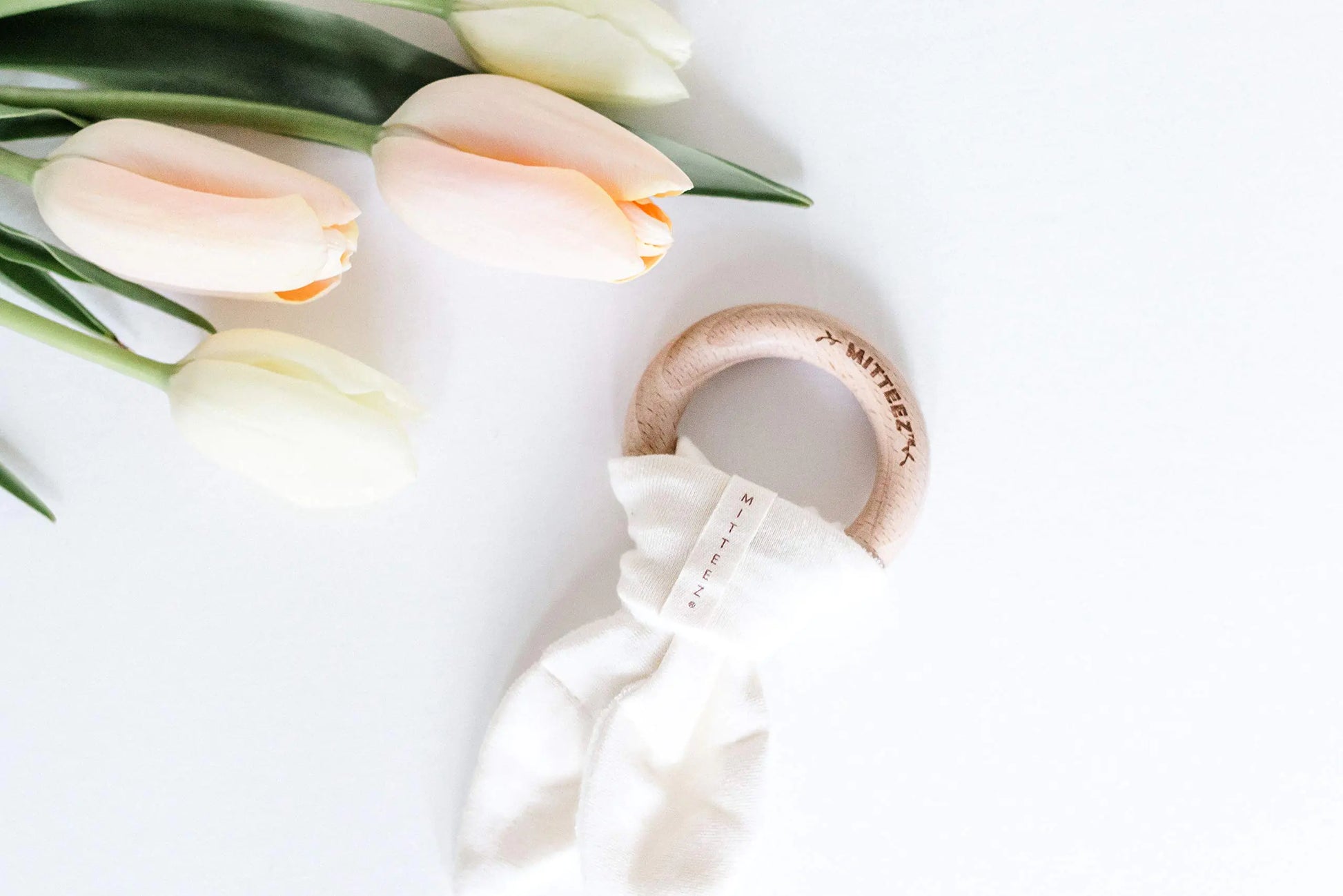 MITTEEZ Wood Baby Organic Wooden Teether with Absorbent Cloth (Natural)